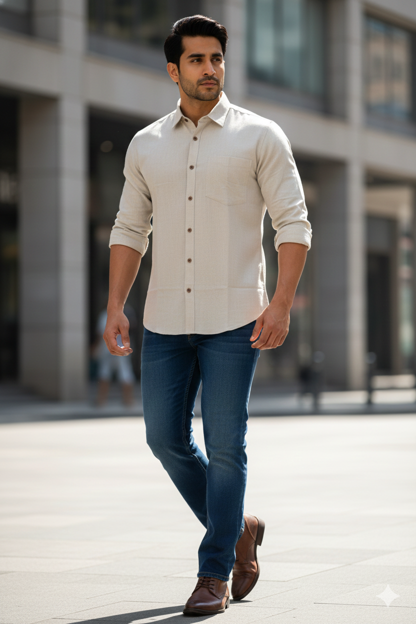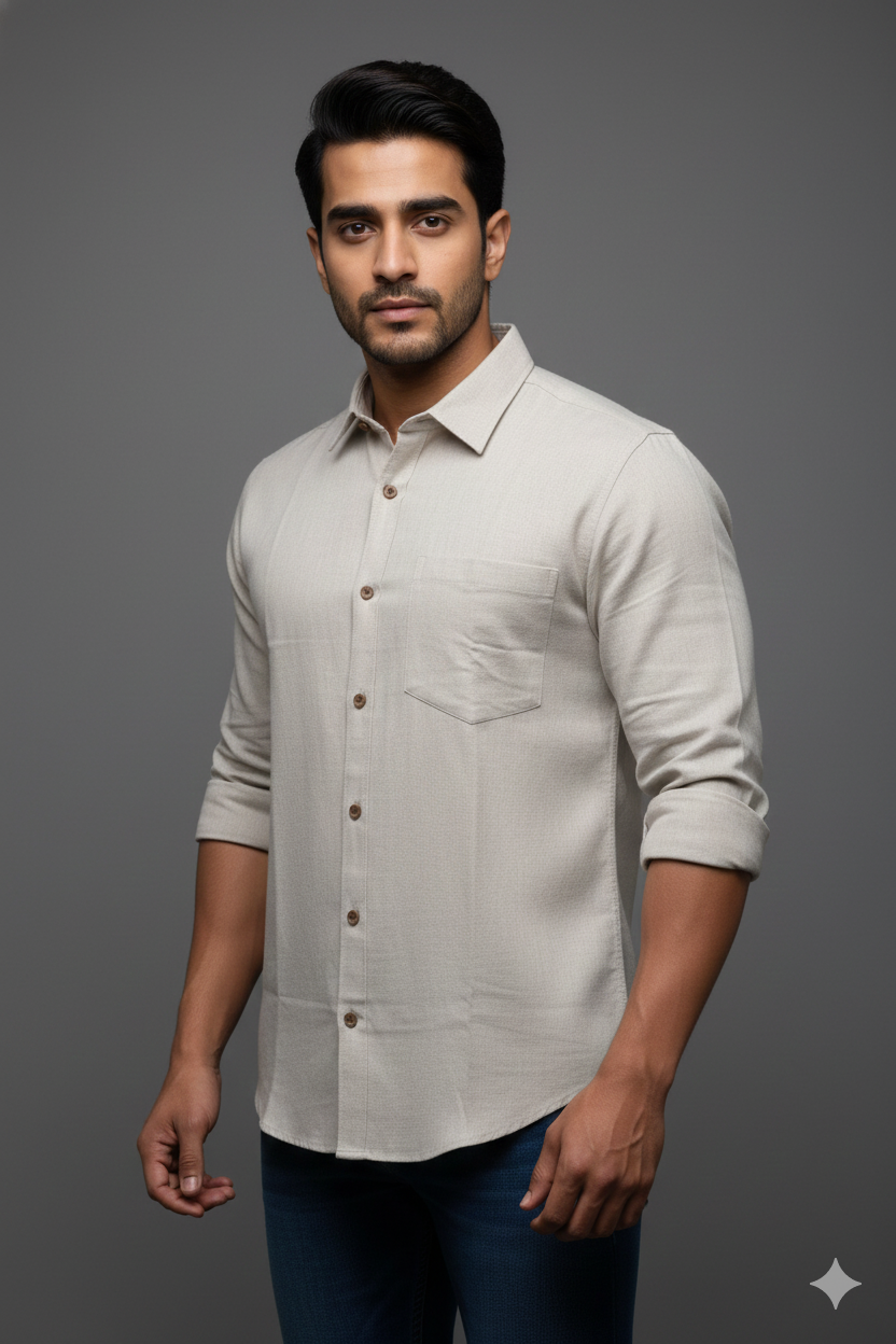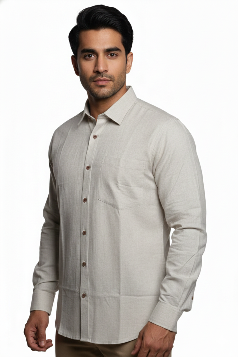 Stay effortlessly cool in this handcrafted Khadi shirt! With its raw texture and breezy fit, it’s a stylish nod to tradition with a modern twist. Pair it with chinos or jeans for a relaxed, earthy vibe.