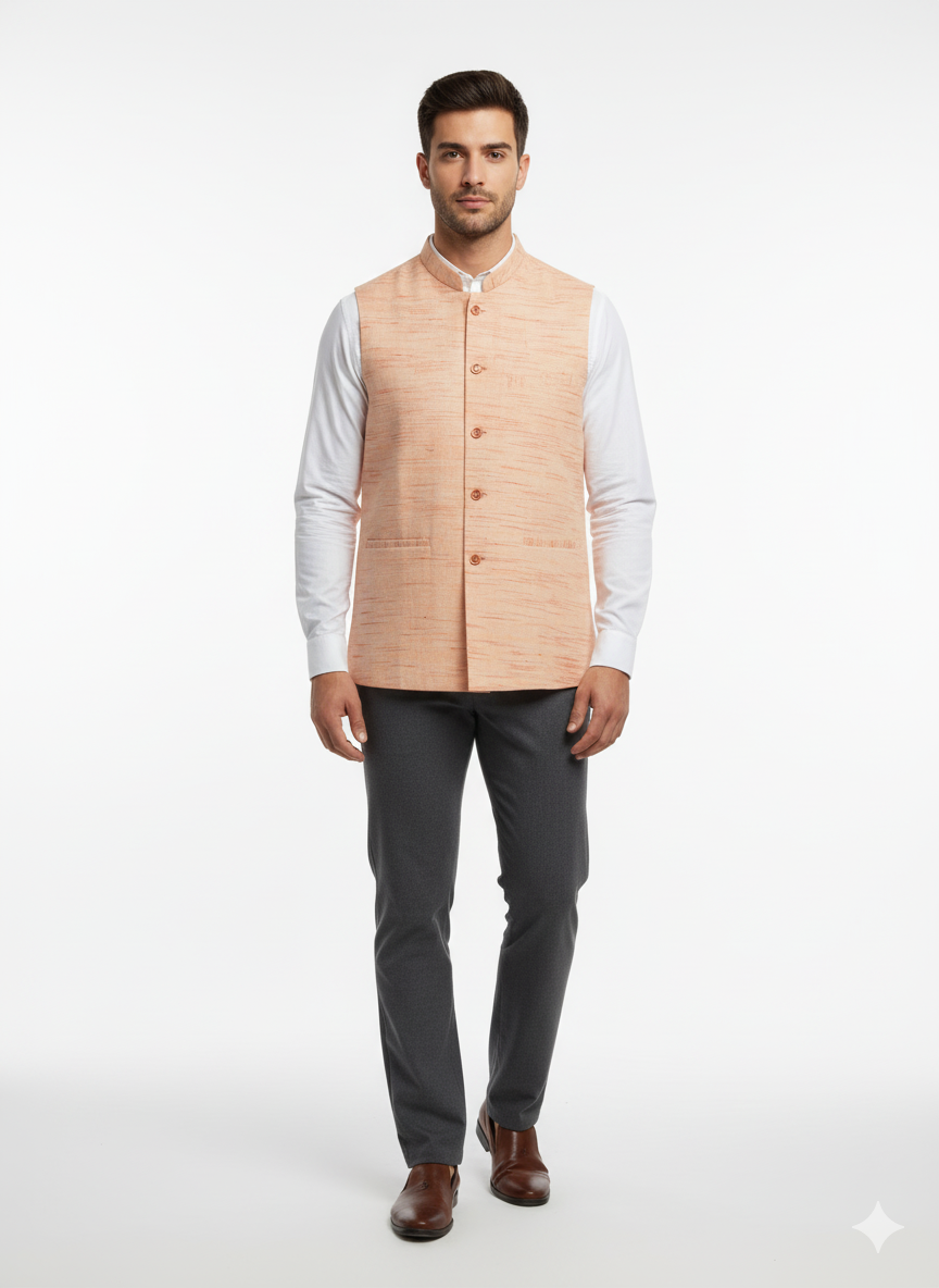 Khadi Nehru Jackets Lite Orange Colour