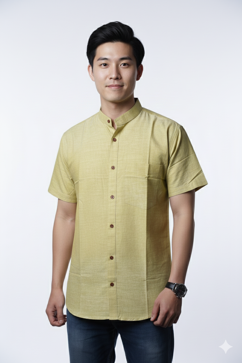 Mustard Gold Handloom Cotton Half Sleeve Shirt