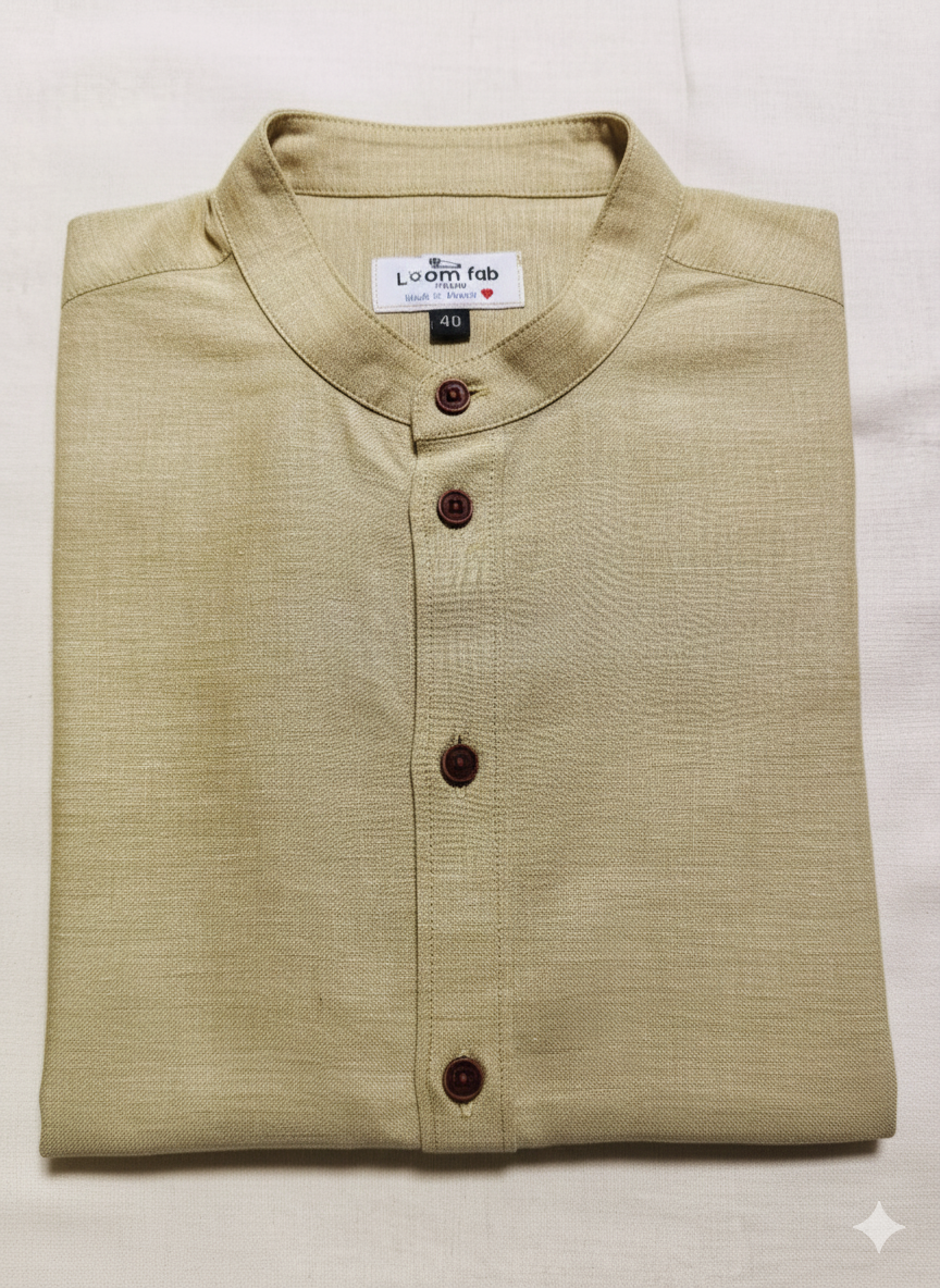 Stay effortlessly cool in this handcrafted Khadi shirt! With its raw texture and breezy fit, it’s a stylish nod to tradition with a modern twist. Pair it with chinos or jeans for a relaxed, earthy vibe.