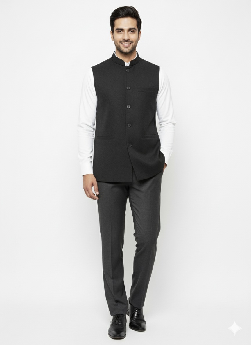 Woolen Nehru Jackets Black Colour